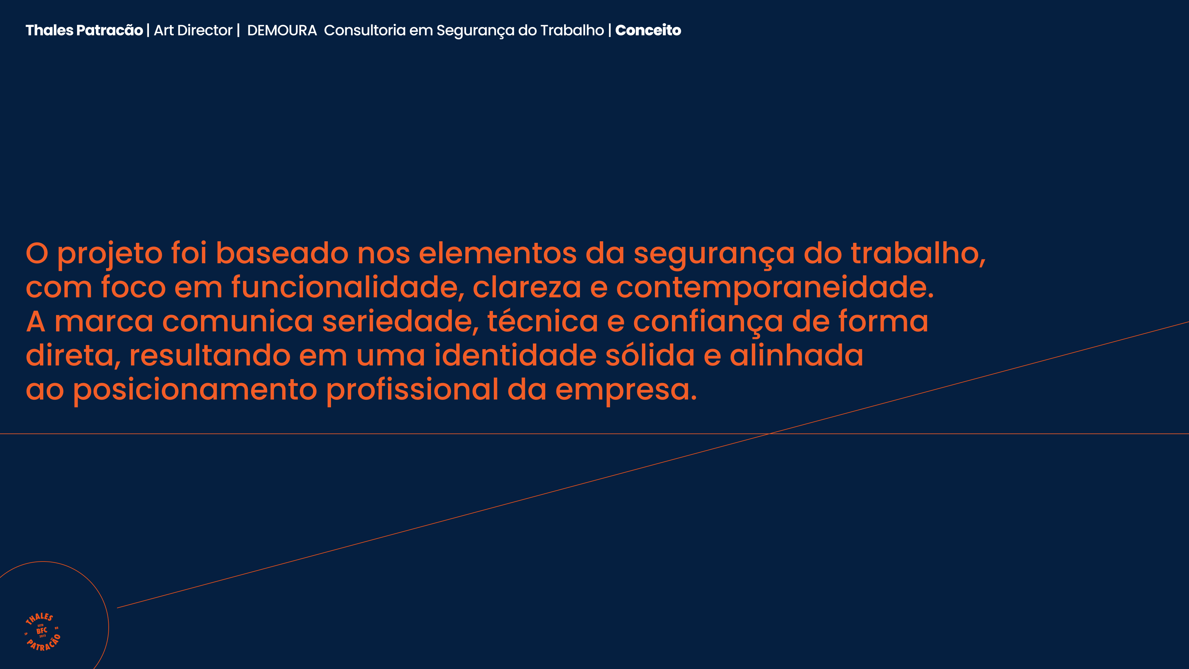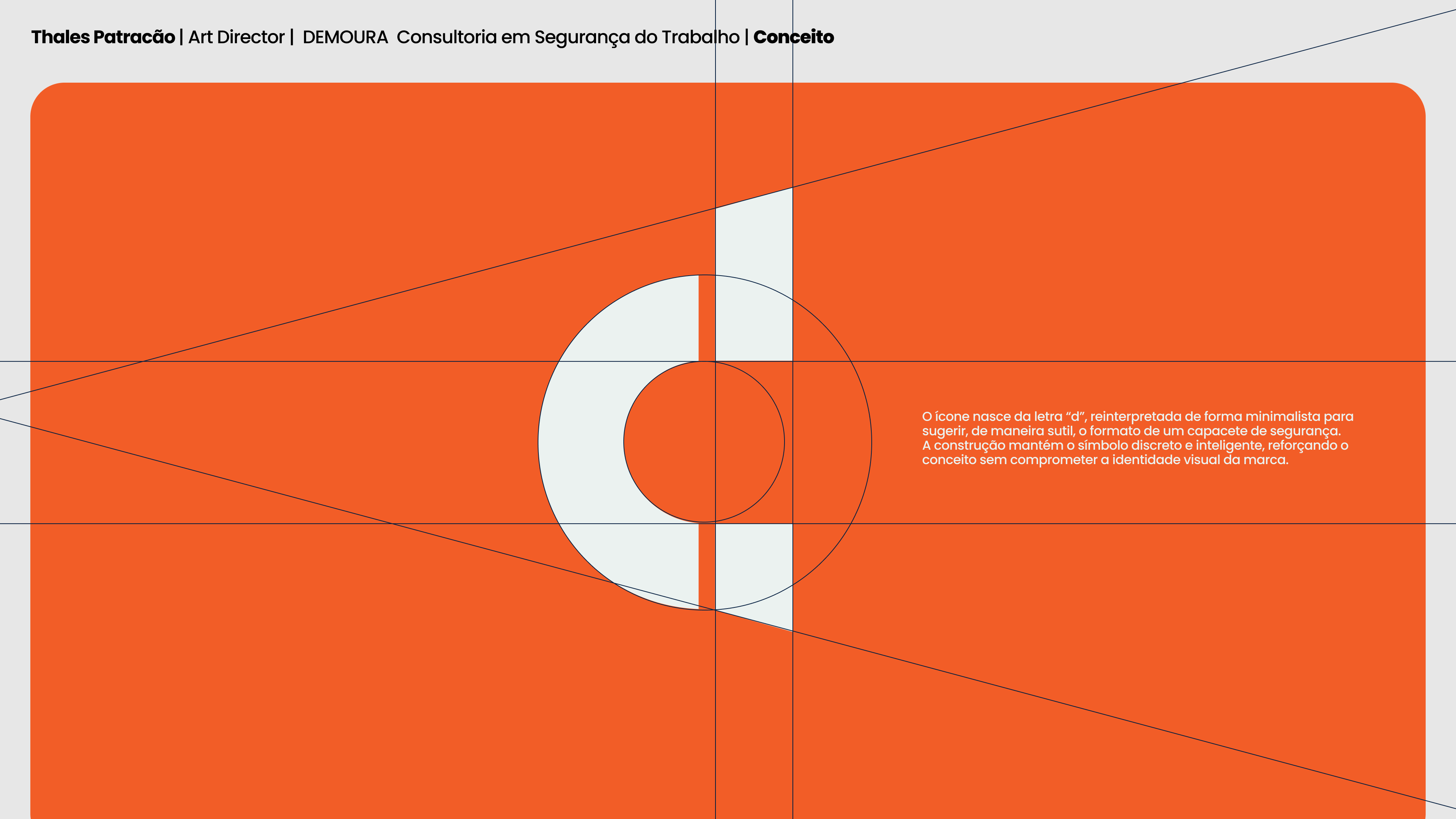 O projeto de identidade visual da DMOURA – Segurança do Trabalho foi desenvolvido para comunicar confiança, técnica e profissionalismo de forma direta e consistente. A proposta visual evita clichês do segmento e se apoia em uma construção gráfica sólida e funcional._O ícone da marca é formado a partir da letra “D”, inicial de DMOURA, desenhada de modo a remeter visualmente a um capacete de segurança. Essa solução cria uma associação imediata com o universo da segurança do trabalho de forma sutil, inteligente e elegante, representando proteção, estrutura e responsabilidade._A identidade adota uma linguagem minimalista, clara e atemporal, garantindo excelente legibilidade e aplicação eficiente em obras, documentos técnicos, sinalizações e materiais institucionais._Tipografia limpa e cores sóbrias reforçam o caráter profissional da marca._O resultado é uma identidade forte, coerente e preparada para o crescimento da DMOURA, transmitindo credibilidade e segurança desde o primeiro contato.