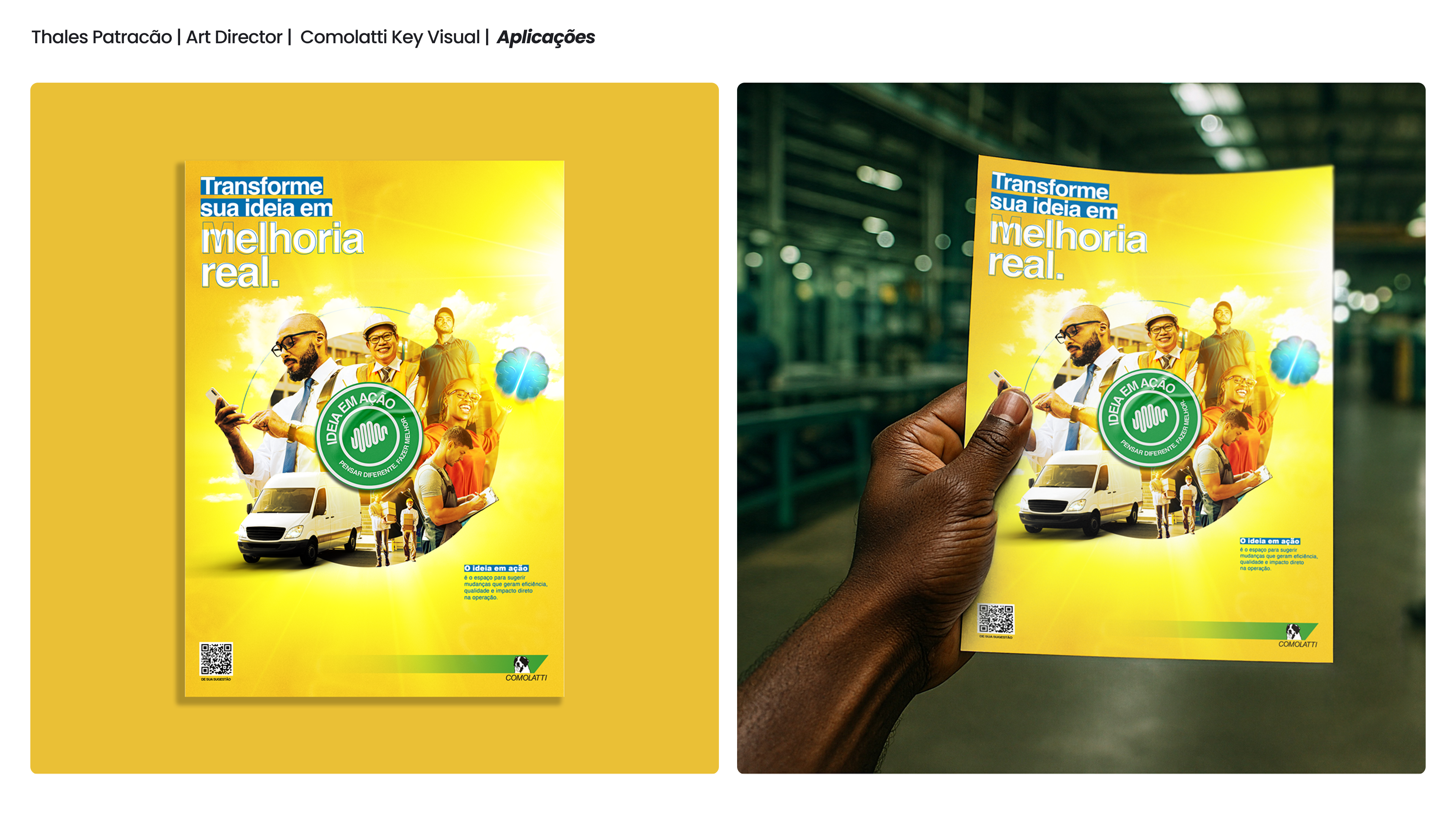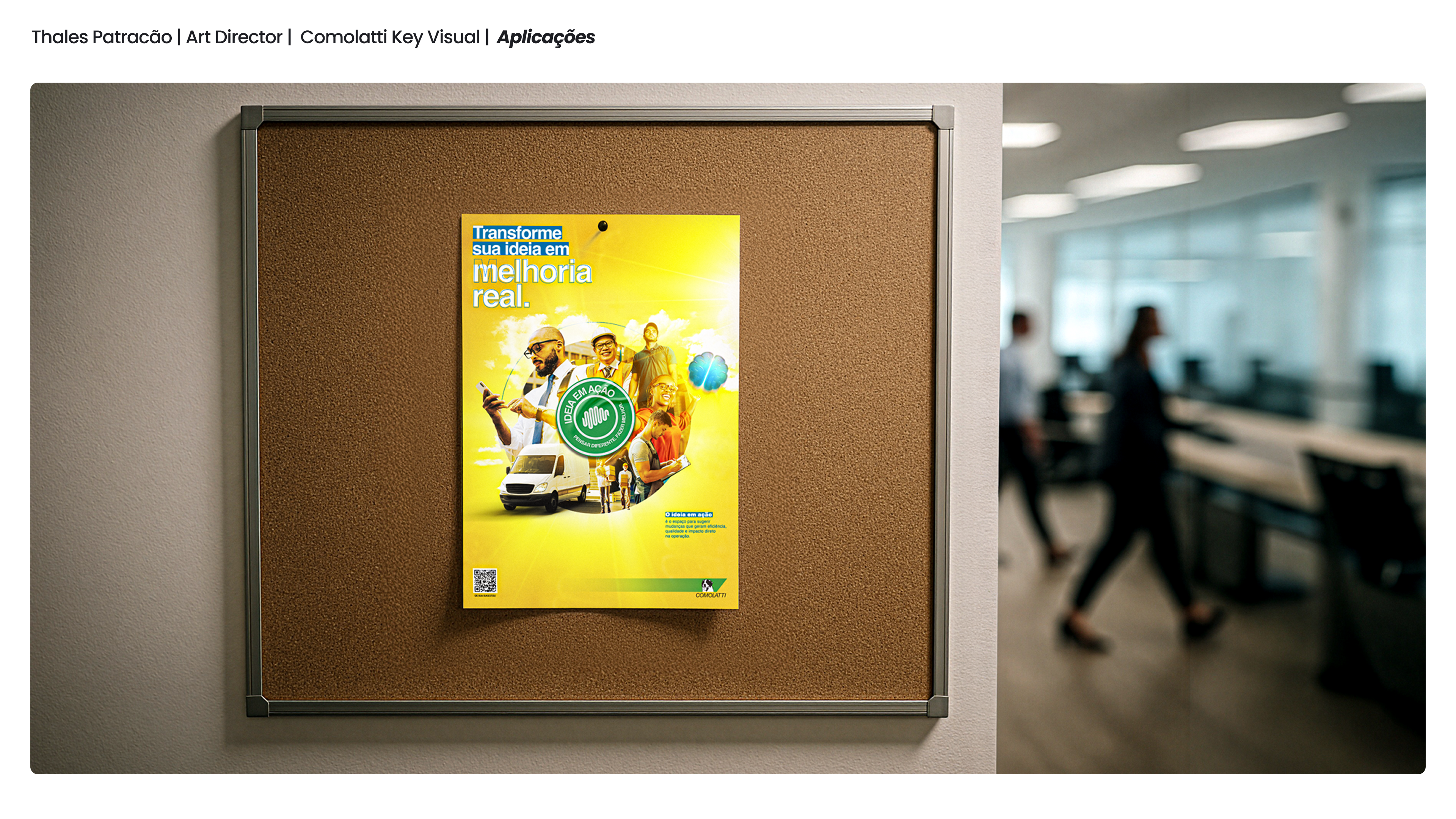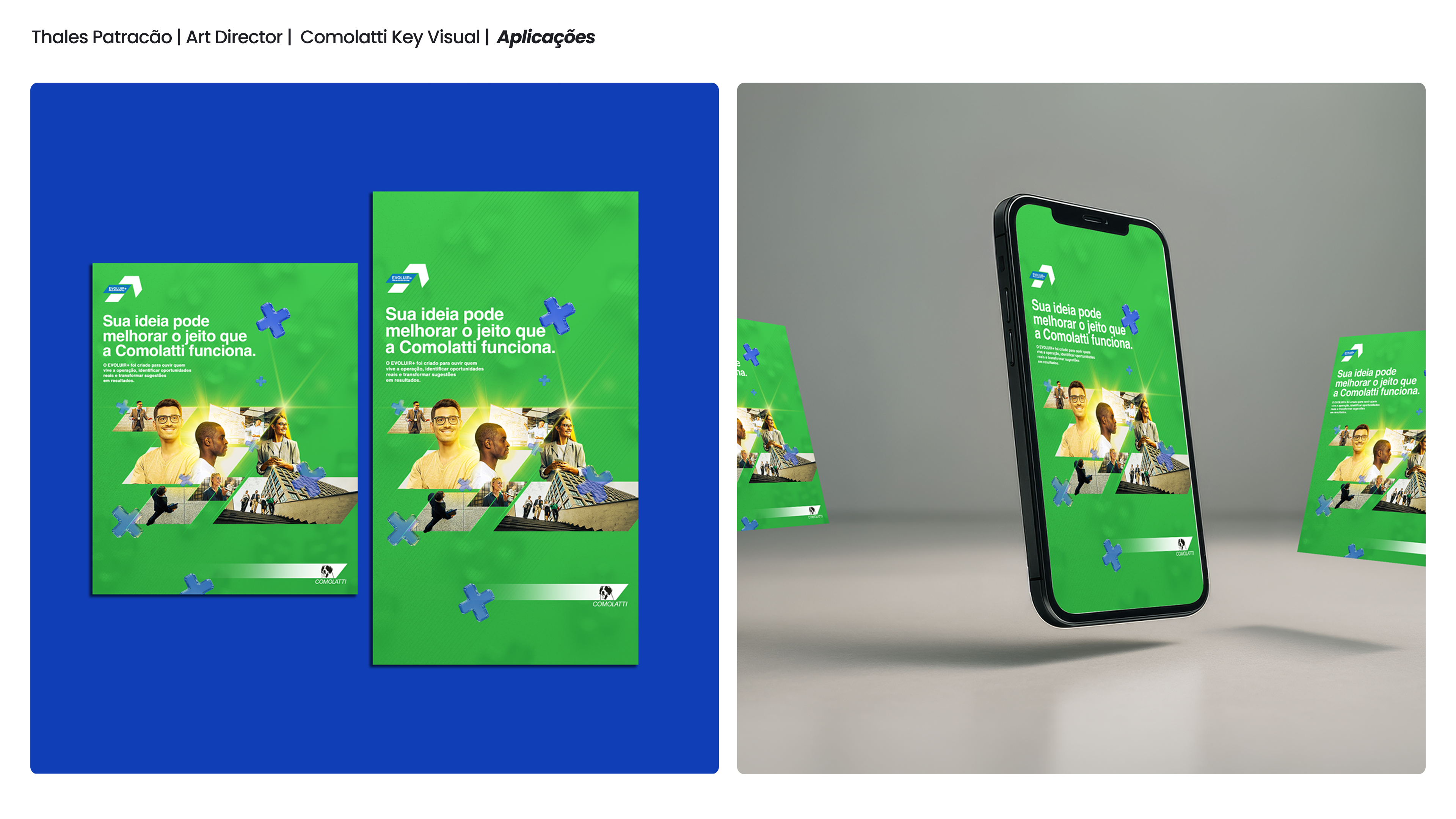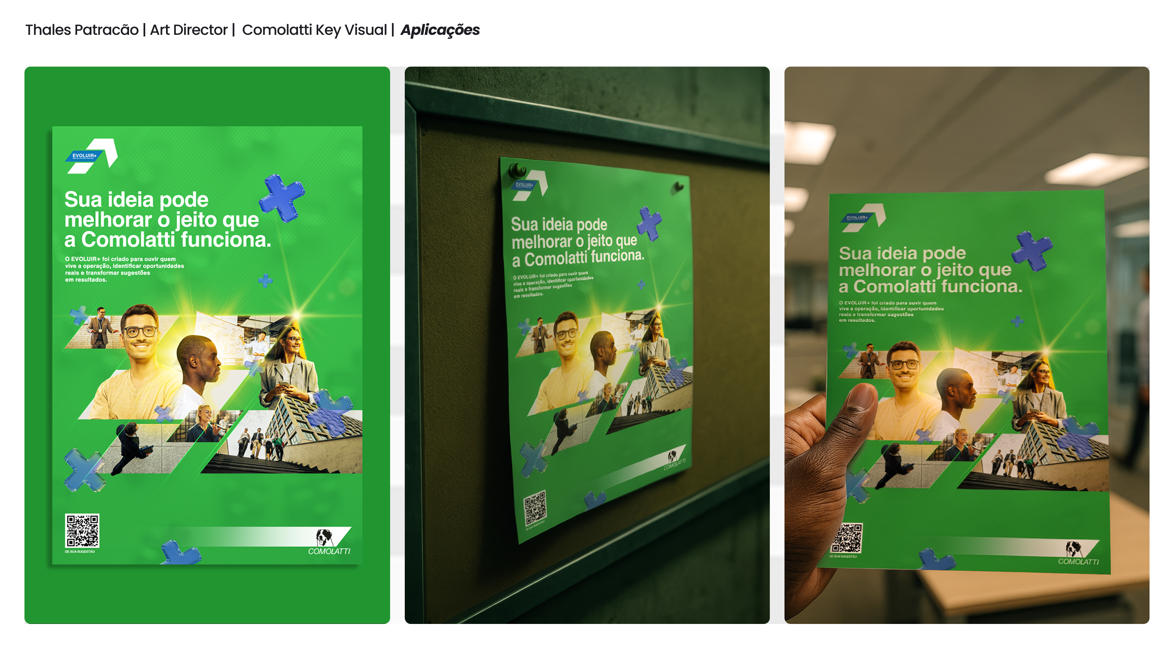 O resultado é um KV sólido, versátil e preparado para desdobramentos digitais, institucionais e internos. A construção reforça evolução, clareza e coerência — atributos fundamentais em projetos de direção de arte, identidade visual e sistemas modulares aplicados em marcas que demandam escalabilidade e consistência.