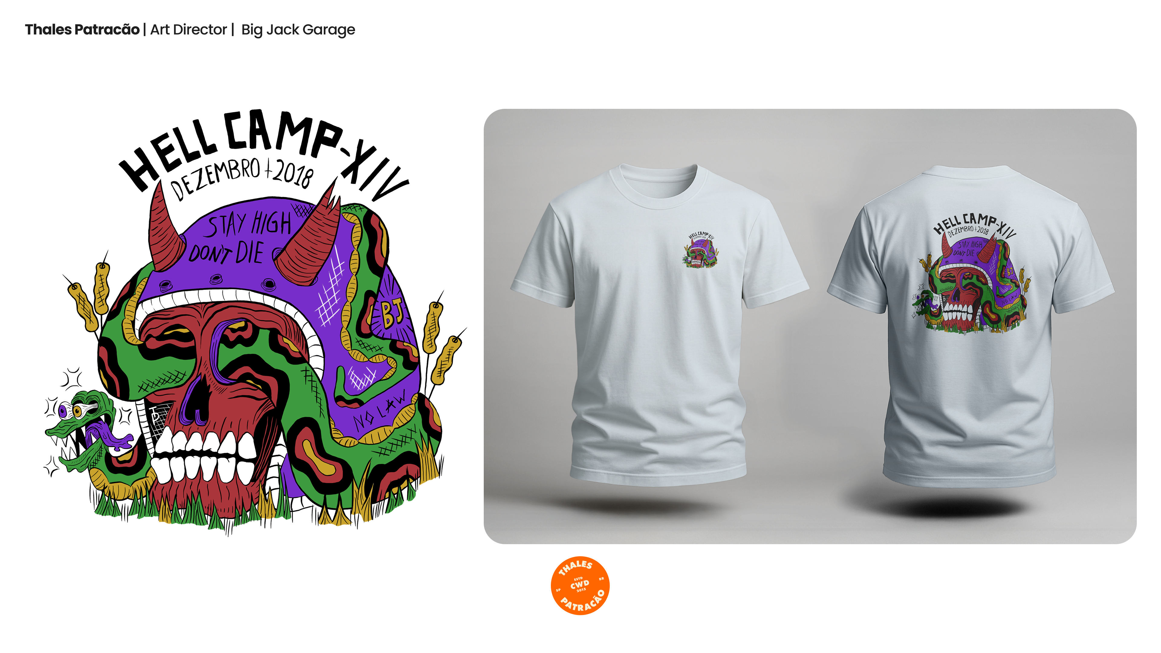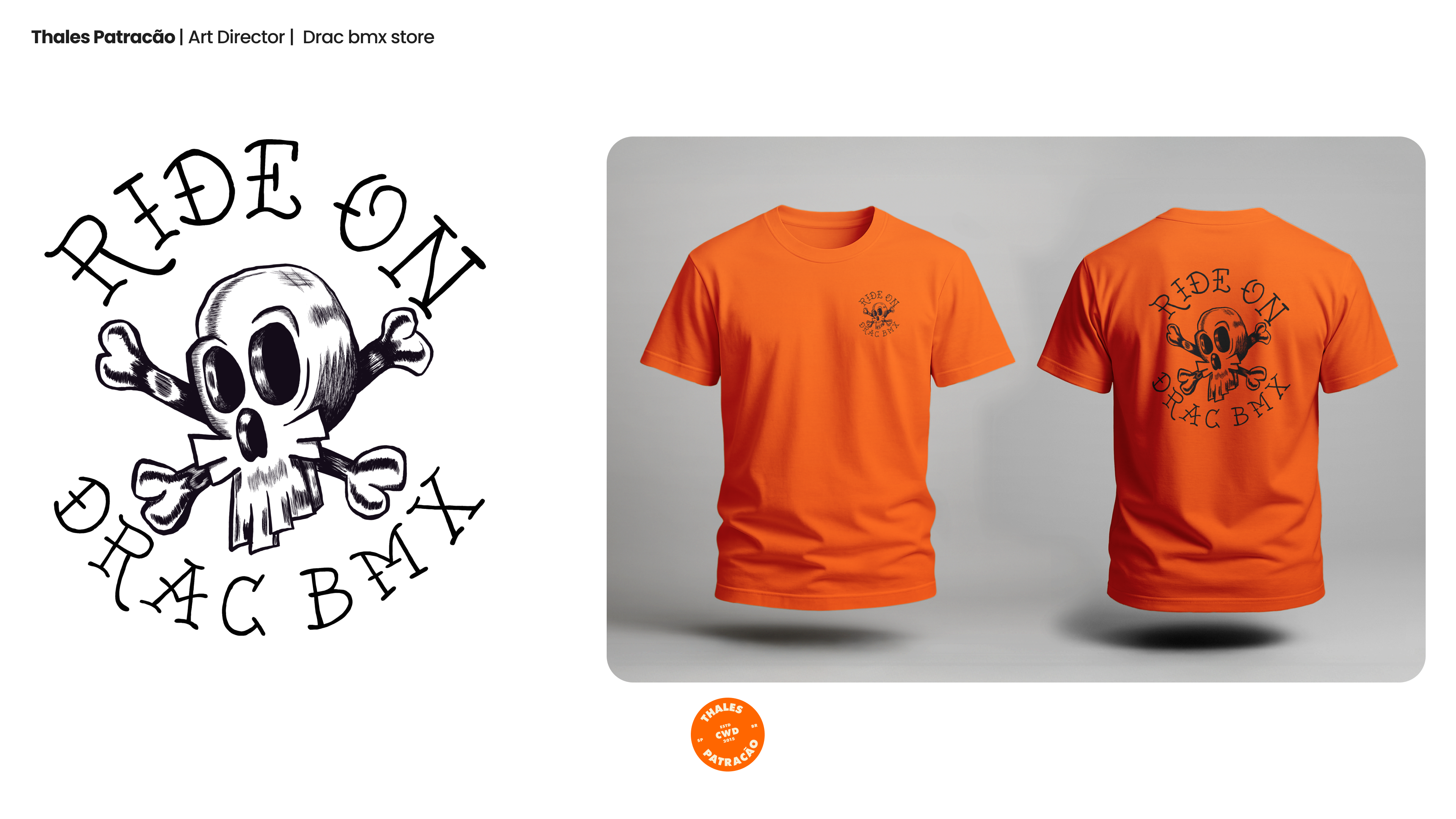 Em 2018, também desenvolvi trabalhos de ilustração para Drac, lenda do BMX, e para sua loja, contribuindo com peças gráficas dentro desse universo.