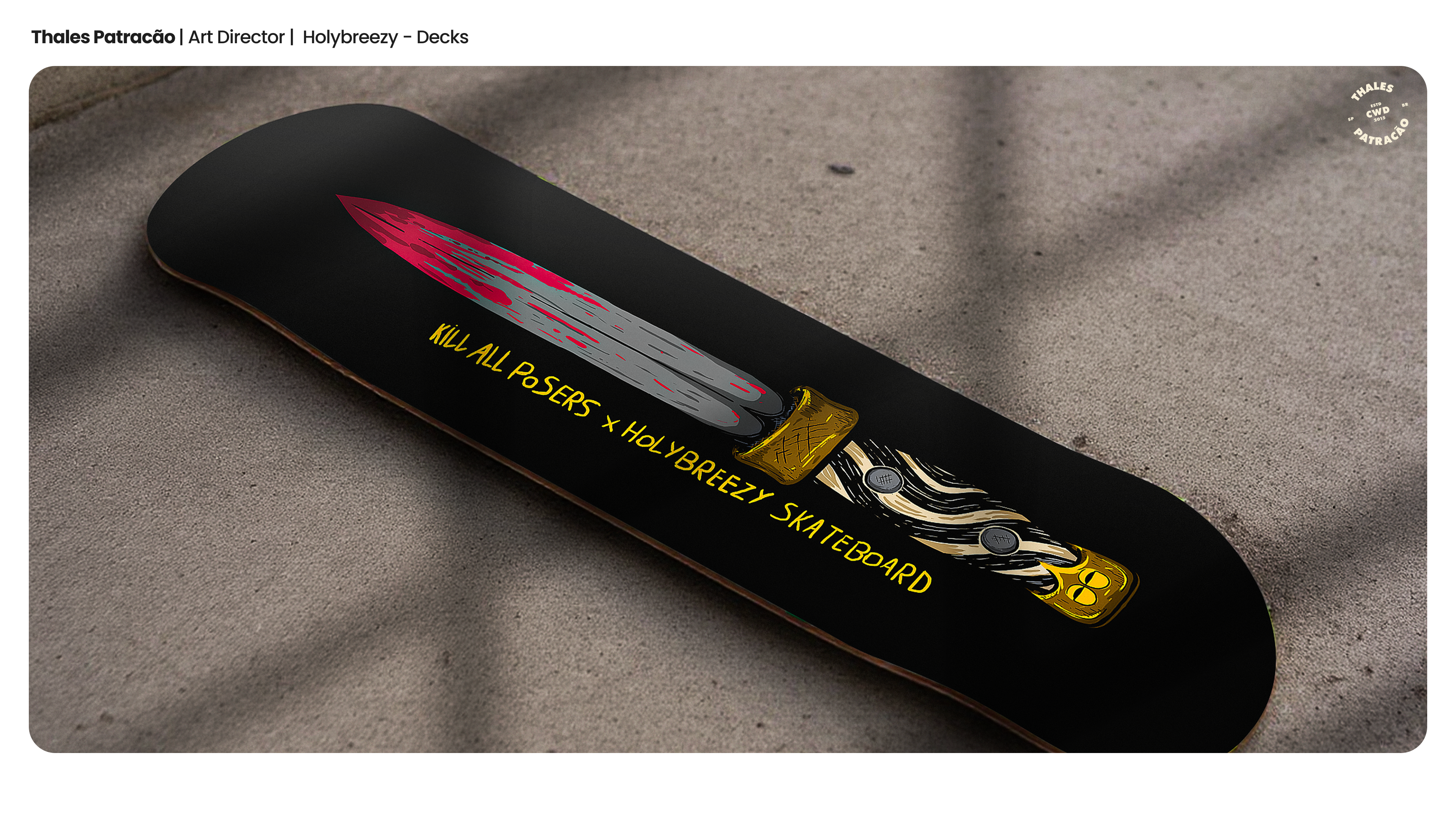 O gosto pelo skate e pelas motos Chopper se conecta a projetos como a Holybreezy Skateboard e ao contato com a Big Jack Garage, ampliando o repertório visual a partir de referências reais.
